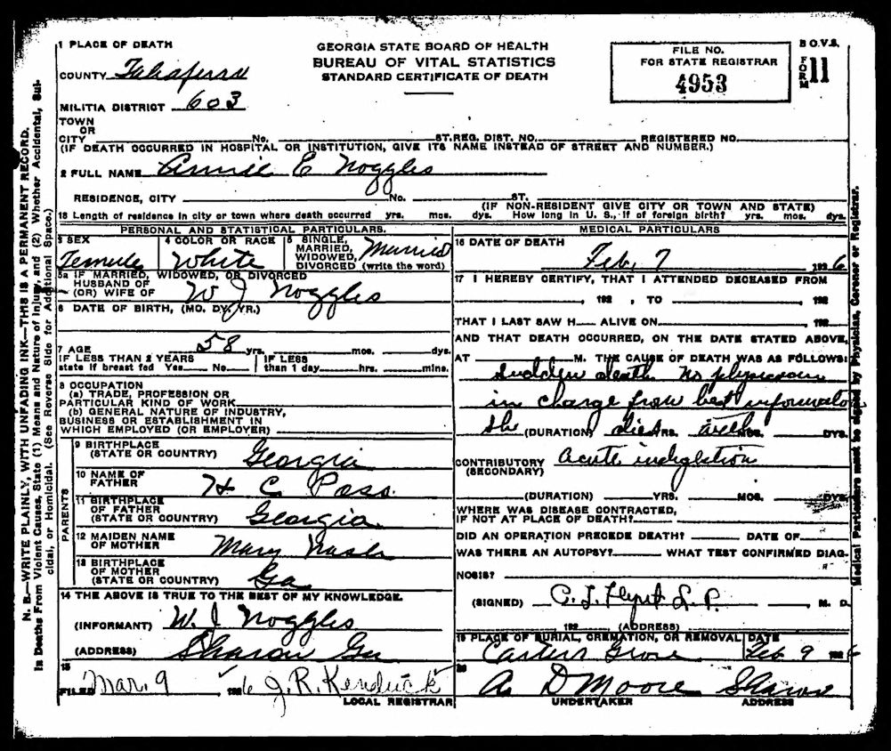 Death Certificate-Annie E. (Poss) Noggle