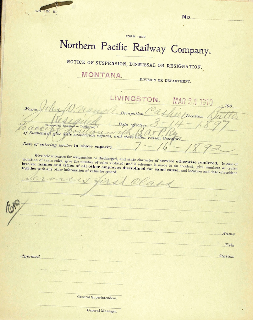 John W Naugle-Resignation Norther Pacific