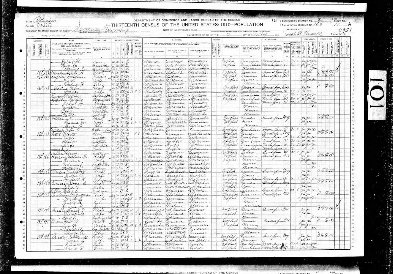 1910 US Census-Joseph W. Harlan, Marvin Harlan, Wm Goodloe