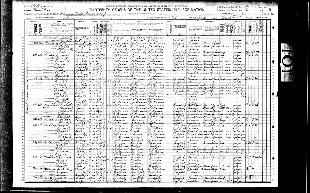 1910 US Census-Maddox-GeoA-Walter-WmT-Arabella-ShedEvans