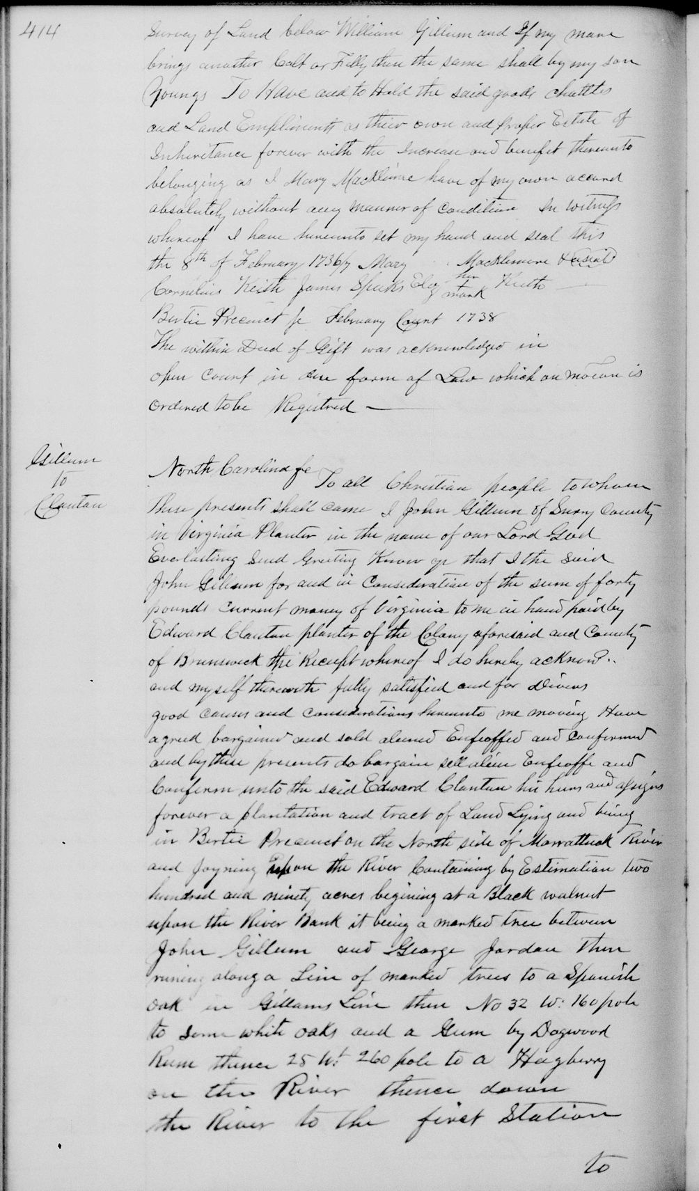 Deed_001-EdwardClanton frJohnGilliam_1738_Bertie