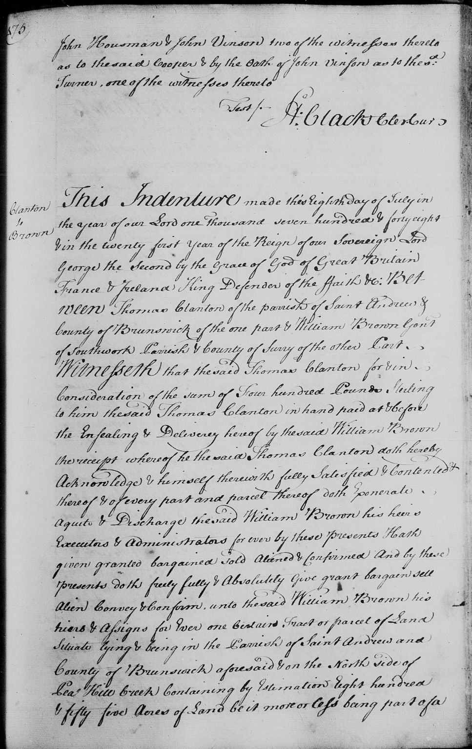 Deed_001-Thos Clanton to Wm Brown_1747_Brunswick