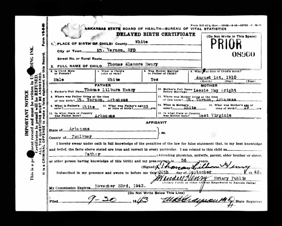 Delayed BC-Thos Elsmore Henry