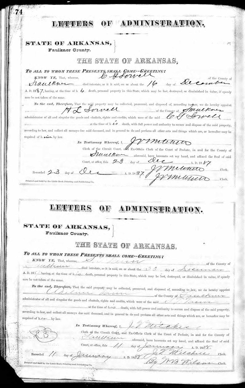 Estate Letters of Admin-Henderson Sowell for Chesley G. Sowell.