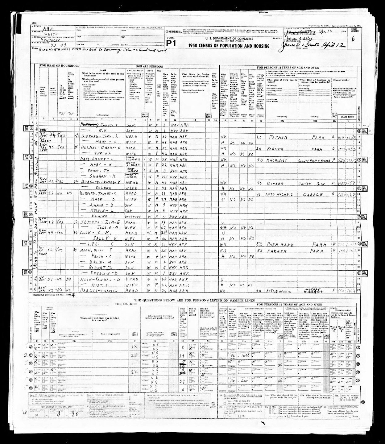 1950 US Census-C.N. Cook