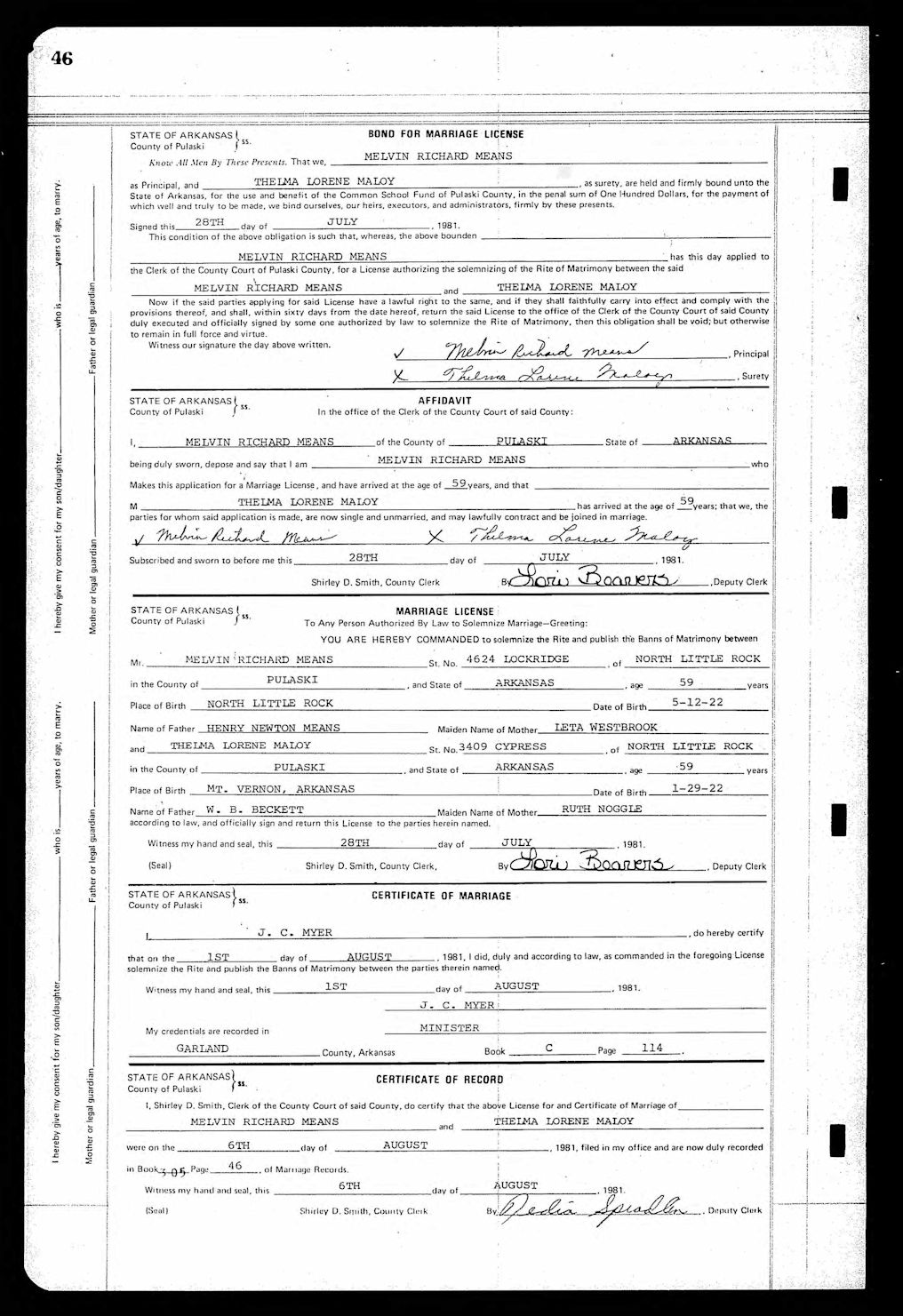 Marriage-Melvin Means-Thelma Lorene Malloy