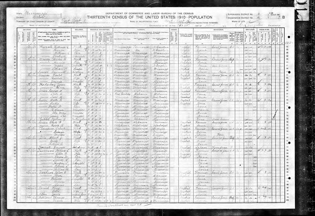1910 US Census-JW Hadaway-Emmett Sowell