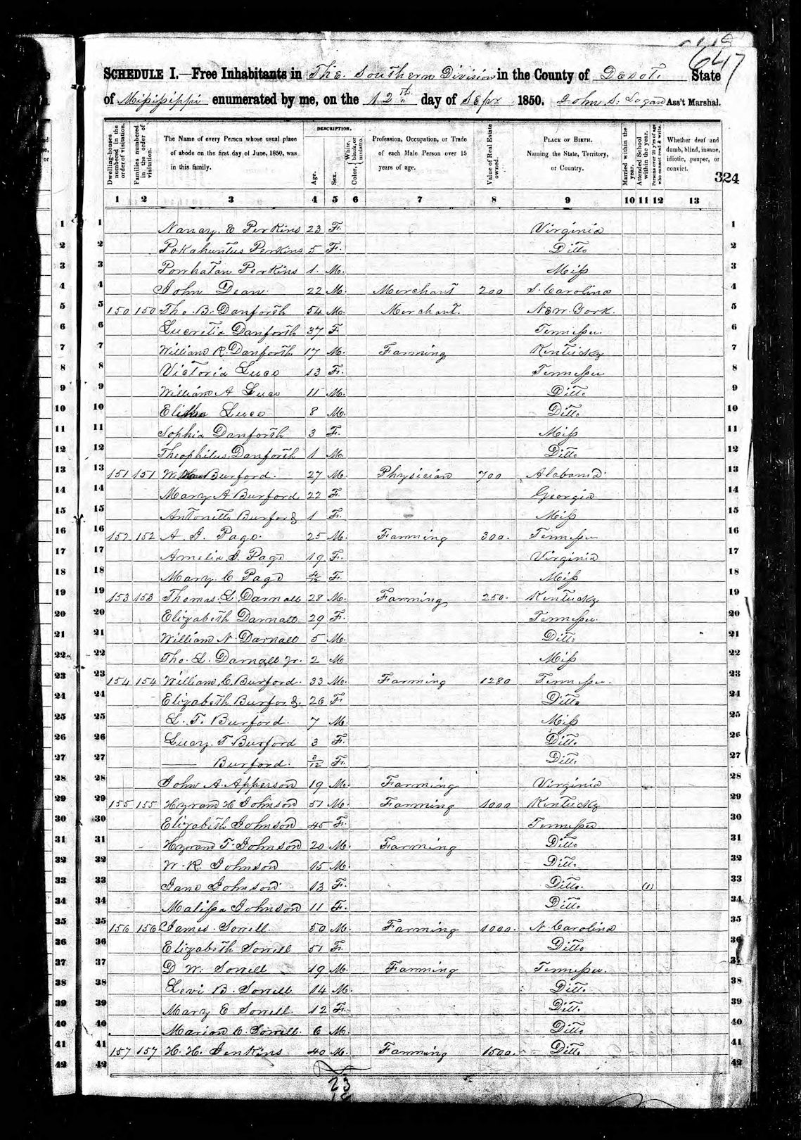 1850 US Census-James T. Sowell