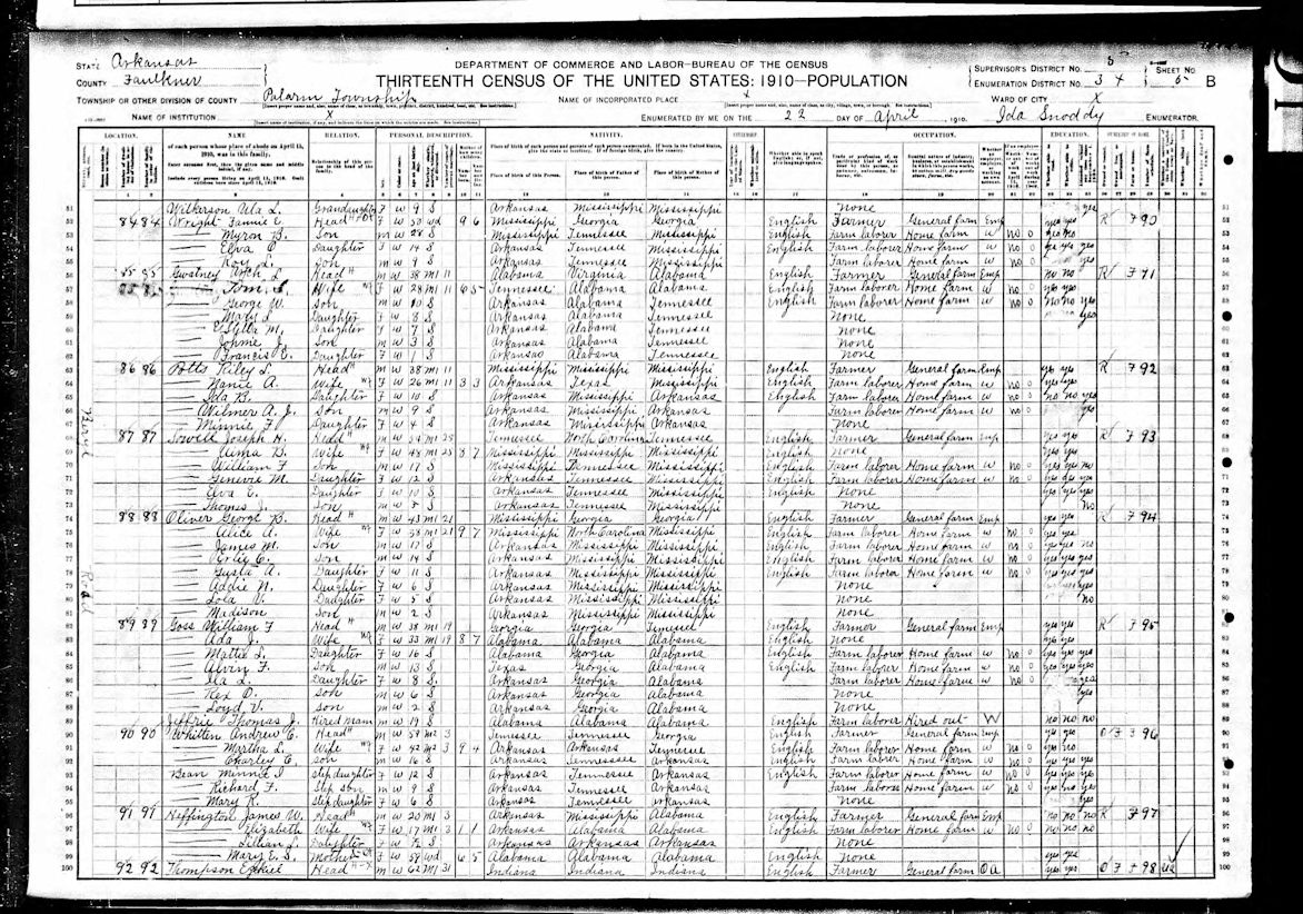 1910 US Census-Joseph H. Sowell