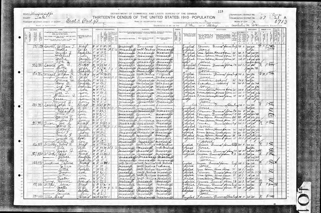 WillT_JohnA_Joe C_Sowell_1910 US Census